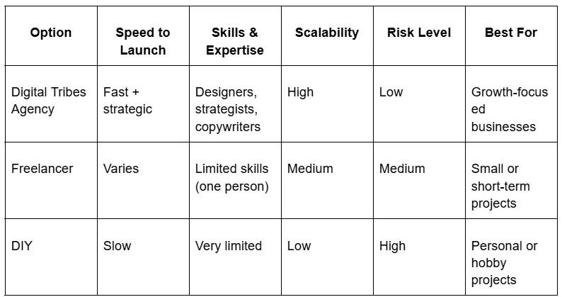 Digital Tribes stands out because we combine creative work with clear strategy, giving you results that last. Many agencies focus only on visuals, but we connect every logo, package, and message back to growth goals. That means your investment looks good and helps you attract customers and increase revenue.